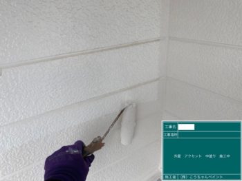 外壁アクセント中塗り施工中