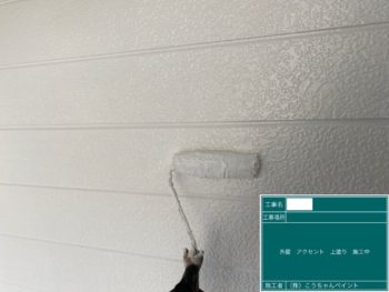 外壁アクセント上塗り施工中