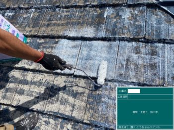 屋根下塗り施工中
