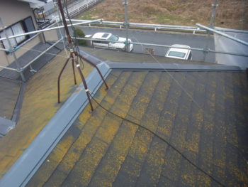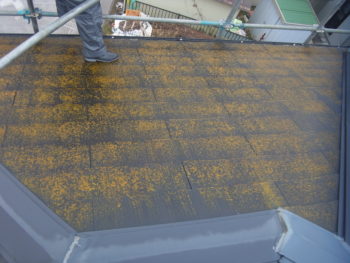 屋根の苔が全面に付着しています。