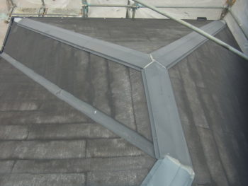 棟板金の塗装を施工中。