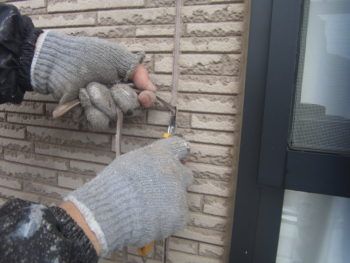 外壁のコーキングを丁寧に、一つずつ新しくしていきます。