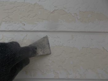 剥がれを丁寧にケレンで落としていきます。