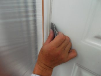 玄関ドア、ケレン作業中になります。