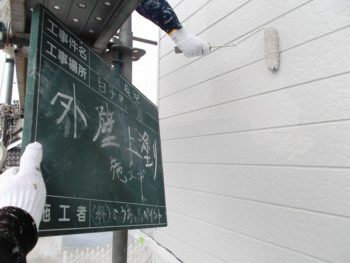 中塗りは色を変えて施工すると分かりやすいですね。