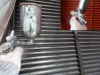 雨戸に錆止めを施し、吹き付け作業になります。