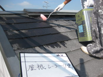 屋根、中塗り作業です。