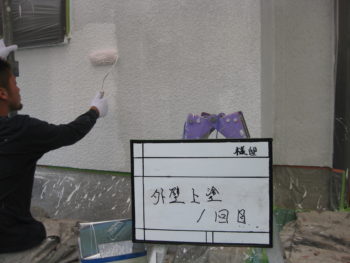 外壁、中塗り作業です。