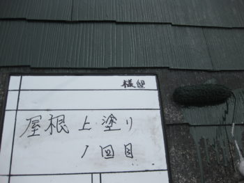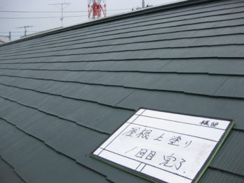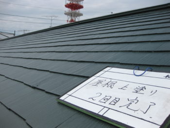 屋根、上塗り作業になります。