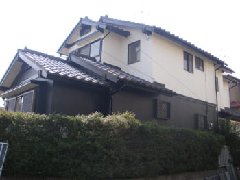 | ご提案内容 | H様邸ではお色を1階と2階をツートンに分け、塗替えをさせて頂きました。玄関部分では帯板(見切り材)が無かったためH様とご相談の上、バランスを見て施工をさせて頂きました。外壁のクラックはコーキング処理、木部の痛みは下地処理のケレンを丁寧に致しました。ツートンのお色がとても素敵です。また室内では6畳、二間のお部屋をカーペットからフローリングに張替えのご依頼を頂きました。フローリングは明るいお色をお選び頂きました。 |