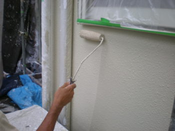 中塗り施工中です。
