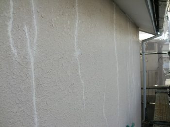 | ご提案内容 | モルタル外壁でひび割れが見受けられましたのでコーキングを打ち、下塗りで厚塗りをし、 更に、コーキング後を目立たせないよう中塗り、上塗りを施しました。 お色選びではカラ―シミュレーションや、一緒に物件をまわりながら様々な物件を参考に、ご希望のアイボリー系のお色をお選び頂きました。 今回、こだわりポイントの雨樋!こちらは縦は壁と同系色に、横は黒でアクセントをつけ完成させて頂きました。 |