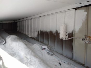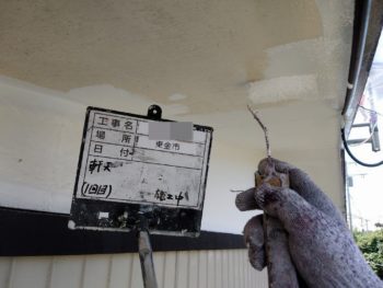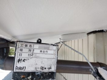 軒天塗装2回目施工中