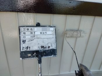 外壁中塗り施工中