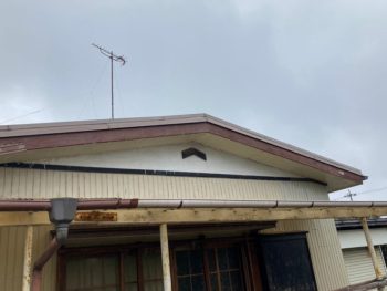 | ご提案内容 | 離れのお宅でしたのでそこまでお金をかけたくないけど、出来る範囲で綺麗にしてもらいたいとの事でしたので 屋根と軒天・破風板をご予算に応じてしっかりと塗装させて頂きました。 外壁は旦那様が塗装されておりましたので、出来ない箇所を塗装させて頂きました。 |