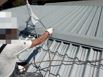 屋根上塗り施工中