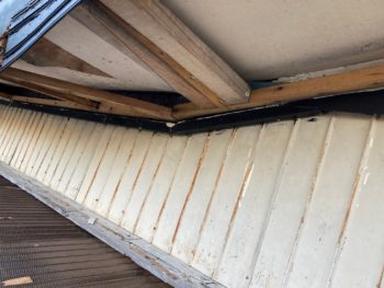 軒天は大きく破損しています。