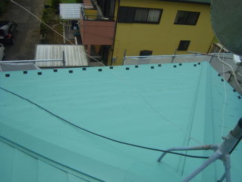 グリーンの屋根が外壁とマッチしてとても綺麗です