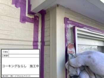 コーキングならし施工中