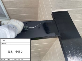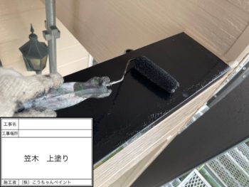 笠木上塗り施工中