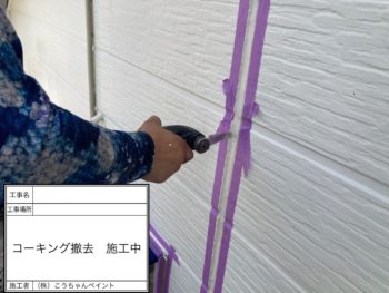 コーキング撤去施工中