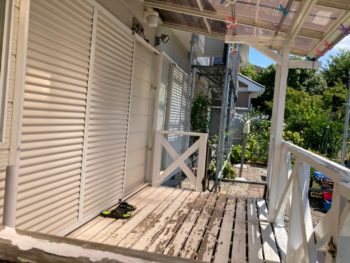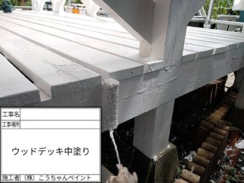 ウッドデッキ中塗り施工中
