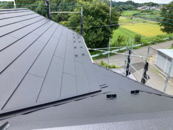 屋根ガルバ鋼板貼り施工中