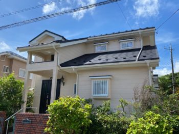 | お客様のご要望 | リピーターのお客様からご連絡をいただきました。10年ほど前にご縁をいただき外壁塗装を承り、定期的なメンテナンスとして今回も当社にお声がけいただき再度ご依頼をいただきました。外壁は日本ペイントで塗装、屋根は、卓越した質感を誇る屋根素材であるスーパーガルテクトでのカバー工事を行いました。スーパーガルテクトは令和4年には文部科学大臣賞を受賞した屋根材です。瓦やスレートなど、ほかの屋根材に比べかなり軽量で遮熱性や断熱性だけでなく防火性にも優れています。また、耐久年数や保証年数も長期であるという点でもお勧めです。いつも伺わせていただいた際には、温かく家族のように迎え、接してくださり本当に心が温まる想いでした。長く住まれるお住まいが健康で、安心して過ごせるよう今回もお手伝いさせていただけ光栄です。 |