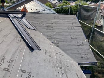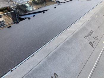 屋根ルーフィング貼り施工中