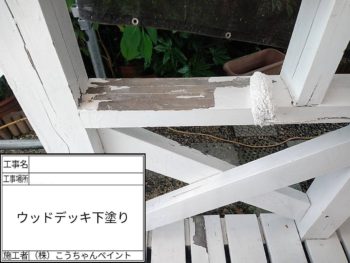 ウッドデッキ下塗り施工中