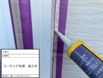 コーキング充填施工中