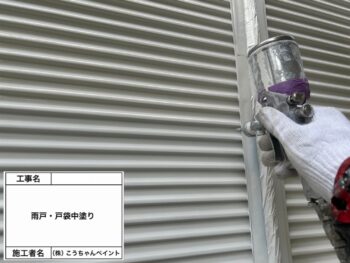 雨戸・戸袋中塗り施工中
