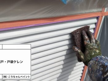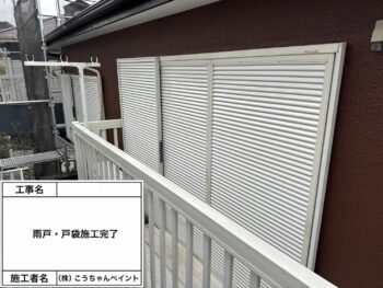 雨戸・戸袋上塗り施工中