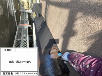 出窓・霧除け中塗り施工中