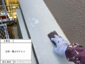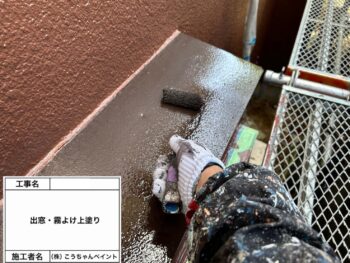 出窓・霧除け上塗り施工中