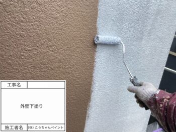 外壁下塗り施工中