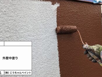 外壁中塗り施工中