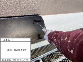 出窓・霧除け下塗り施工中