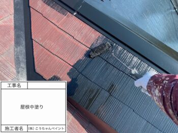 屋根中塗り施工中