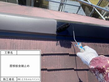 屋根板金錆止め施工中