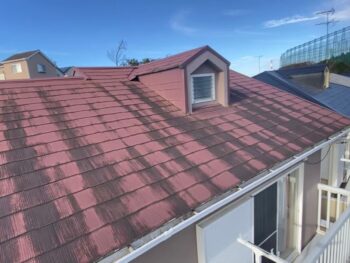 汚れの付着と雨跡が顕著な部分はあるものの屋根材そのものの劣化は軽度のため、現状をご説明し、この度は屋根塗装の施工を承りました。