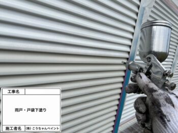 雨戸・戸袋下塗り施工中